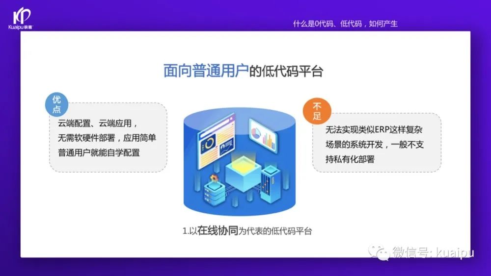 “這兩年快普已經(jīng)成功轉(zhuǎn)型為數(shù)字化平臺服務(wù)商,為客戶提供開發(fā)平臺和解決方案(產(chǎn)品)等服務(wù)。我們先從開發(fā)平臺說起,目前市場上的零代碼、低代碼平臺大致可以分為這幾類: