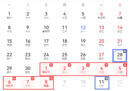2、補(bǔ)班時間:2025年9月28日(周日)、2025年10月11日(周六)